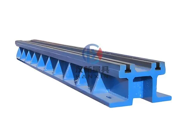 Cast iron T-slot guide rails are evenly disposed according to the fixed point of large equipment, and then join together as a whole ground rail platform. They are mainly used for the assembling, trial, welding and testing of large equipment. They can replace large cast iron surface plates, and save cost and space.